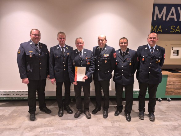An unserer Jahreshauptversammlung am 15.05.2022 wurde unseren Mitglied Franz Rackl, aufgrund seiner 30-Jährigen Tätigkeit als Kassier, durch Kreisbrandrat Jürgen Kohl die Bayerische Feuerwehr-Ehrenmedaille verliehen.